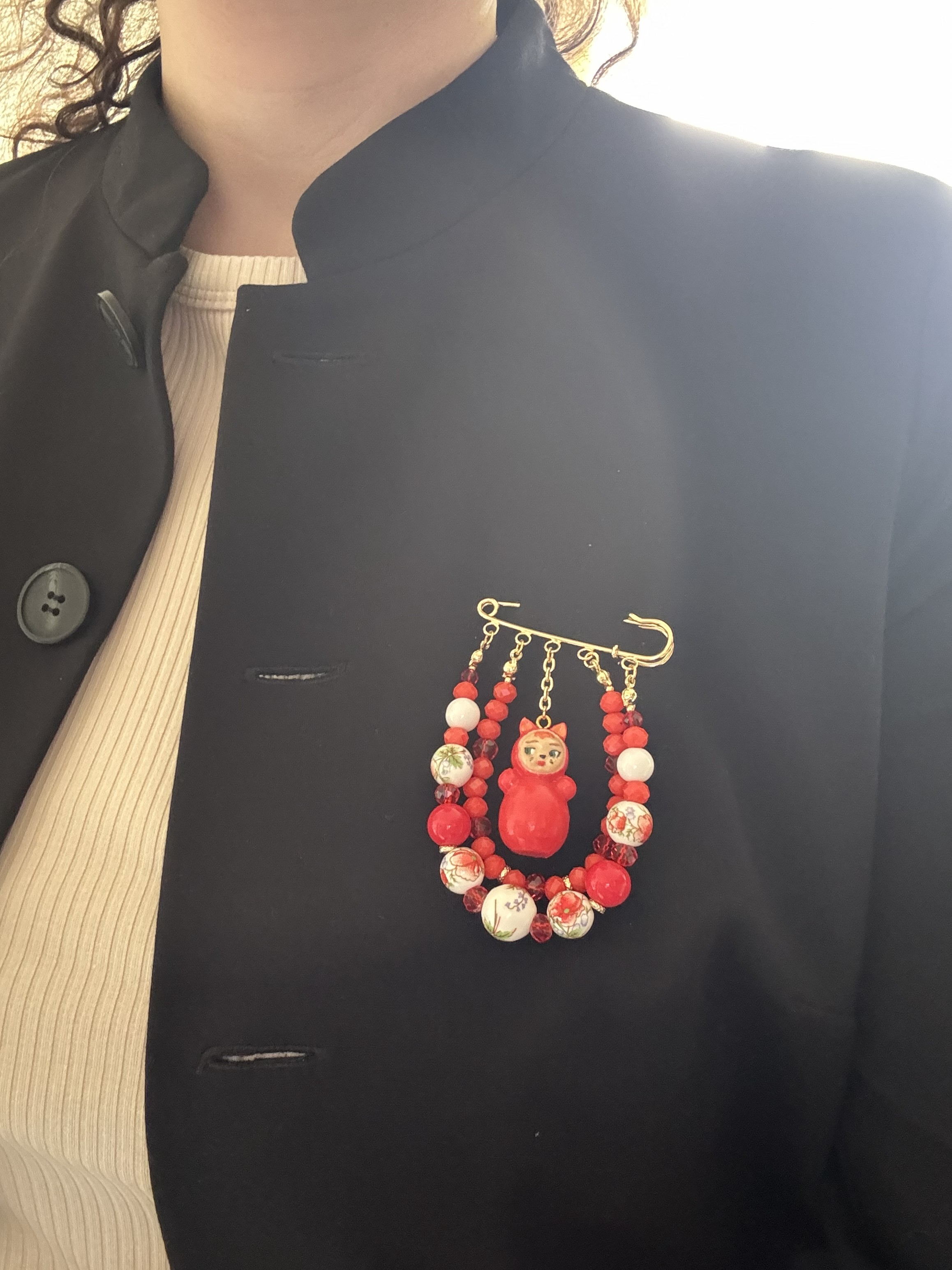 Эта брошь-булавка — не просто украшение, а маленький персонаж с настроением, который легко становится частью вашего образа.