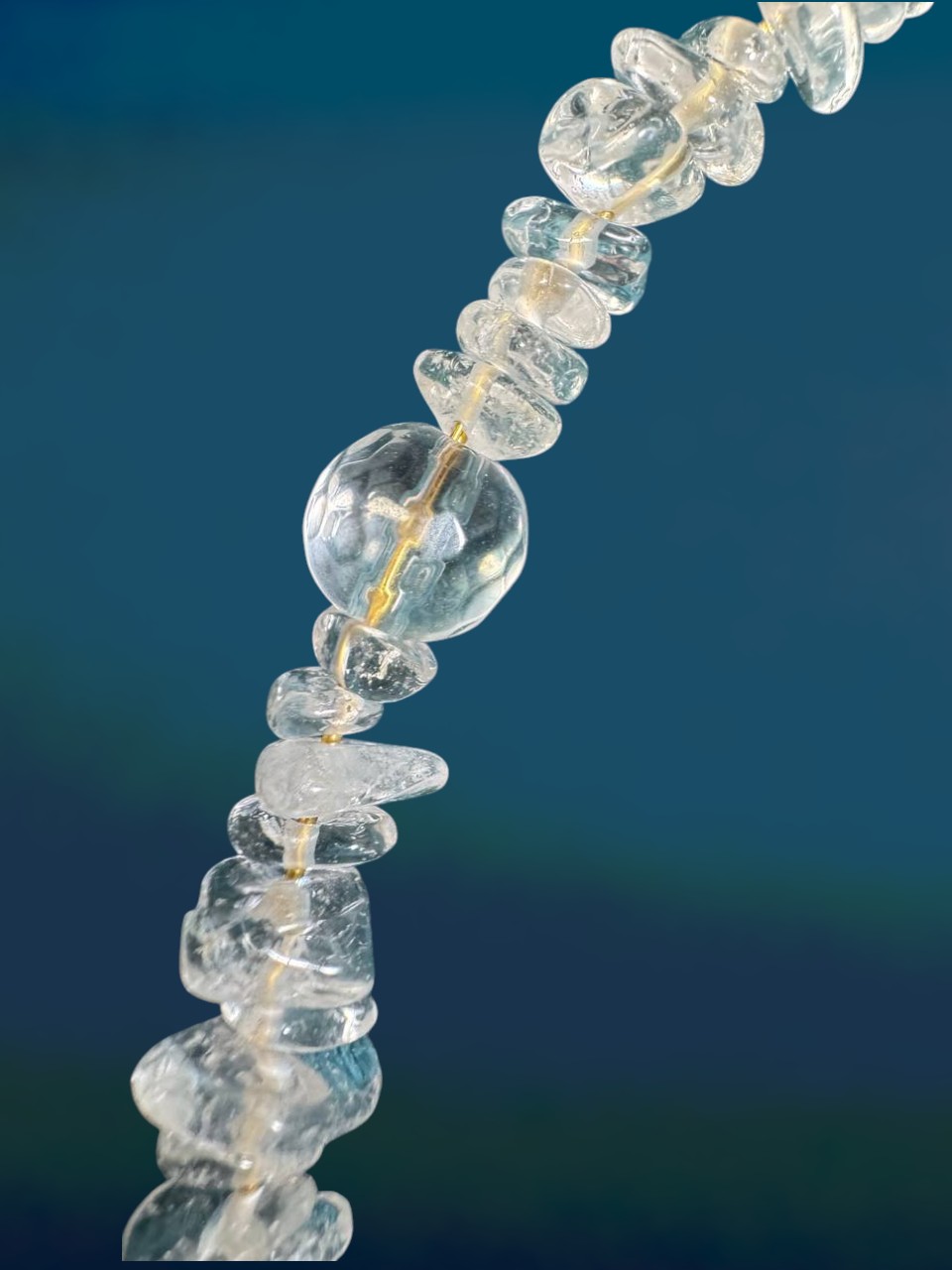 Ожерелье "Снежная королева" из горного хрусталя, вылнено в современной технике без замка. Дополнено цепями разного диаметра.